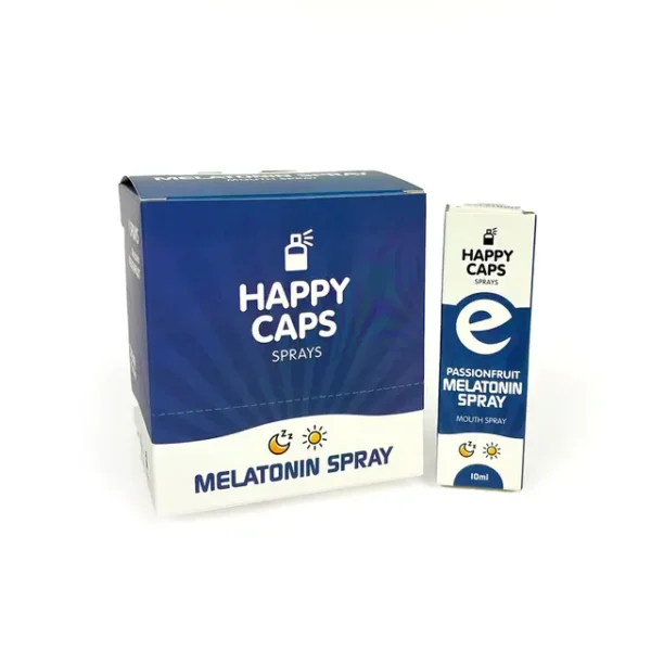Ontspan met de Melatonine mondspray van Happy Caps. Deze spray met passievruchtsmaak helpt je sneller in slaap te vallen en verbetert je slaapkwaliteit. Ideaal bij een jetlag, onrustige nachten of als onderdeel van je avondroutine. Door de snelle opname merk je het effect vaak al binnen 10 minuten.