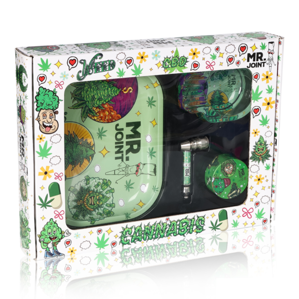 SET “Mr. Joint” – Metal pipe 7cm + Grinder (50mm diameter) + Rolling tray + Glass Ashtray
