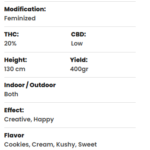 De Bulldog Cookies is een ideale plant voor kwekers op elk ervaringsniveau. Of u nu een complete beginner bent of een professional met groene vingers, deze sativa-hybride zal u niet teleurstellen. Hij is gemakkelijk te onderhouden en te beheren en levert altijd iets unieks af.