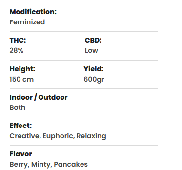 Onderschat de smaak echter niet. Deze overwegend indica zal je doen verlangen naar pannenkoeken die passen bij een Dutch King, gegarneerd met verse bessen en bedekt met ahornsiroop met subtiele ondertonen van munt. Afhankelijk van hoe lang je JMS laat uitharden. De smaak en geur kunnen hier sterk variëren. Om het beste uit deze indica te halen, raden we je aan om je oogst langzaam te laten drogen bij 18-20 graden gedurende 14-18 dagen. Dan zal het exotische terpeenprofiel duidelijk worden en krijg je een mondvol sappige bessen. Joris Pound Cake zal je doen kwijlen als een hond die zijn avondeten eet.