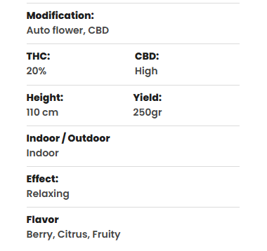 Purple CBD auto is perfect voor kwekers met weinig licht en tijd. In sommige jaren kun je 2 tot 3 keer oogsten met een autoflower van de lente tot de zomer. Deze CBD-plant is ideaal om te proberen, omdat hij snel bloeit – slechts acht weken – en een indrukwekkende opbrengst oplevert. Iedereen kan deze cannabisplant proberen te kweken en goede resultaten behalen.