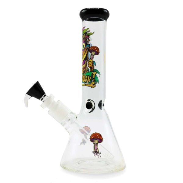 Deze Tiki Beaker Bong combineert duurzaamheid en stabiliteit met een tijdloos design. Met een hoogte van 26 cm en gemaakt van 6 mm dik glas, heeft hij een stevige bekerachtige voet die meer water kan bevatten en de balans tijdens gebruik verbetert. De buis met een diameter van 40 mm zorgt voor een comfortabele grip en een constante luchtstroom.