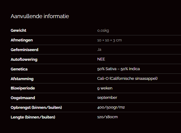 Vooral geliefd vanwege de heerlijke sinaasappel- en citrusgeur en -smaak. Bij gematigd gebruik heeft het een geweldige sociale impact. Maar pas op, overdrijf het niet en je krijgt gegarandeerd het Indica-effect van een meer lichamelijke stone.
