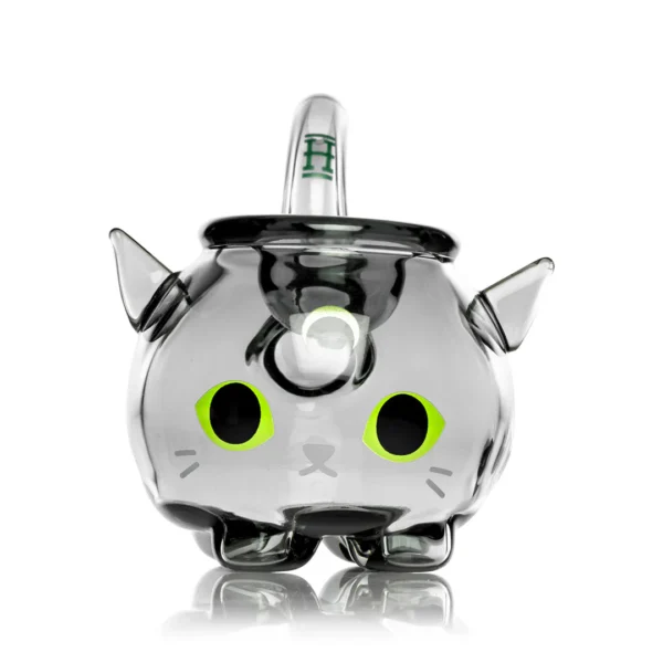 Deze handpijp van Hemper, uitgevoerd in glas, is duurzaam en functioneel. De diepe kom biedt ruimte voor een grote hoeveelheid droge kruiden of tabak, terwijl het dikke borosilicaatglas ervoor zorgt dat deze pijp lang meegaat. De handpijp is ongeveer 7,5 cm lang en heeft de vorm van een kat.